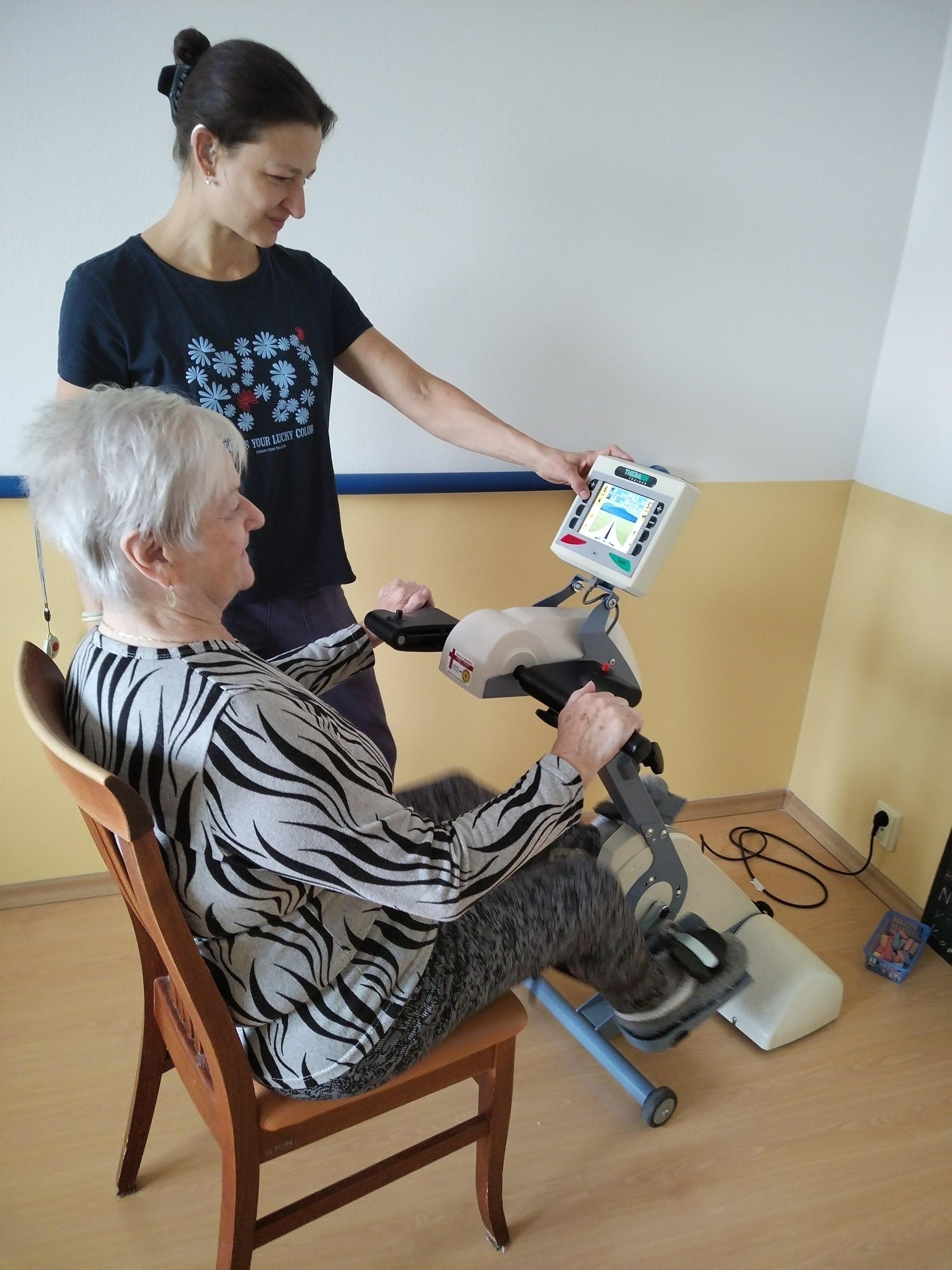 Pohybové aktivizace s fyzioterapeutkou v domově pro seniory je klíčovým prvkem péče o starší osoby, které mohou čelit různým zdravotním problémům a omezením pohyblivosti. Fyzioterapie se zaměřuje na zlepšení fyzické funkce, posílení svalů a zlepšení celkové kvality života seniorů. Fyzioterapeutka s klienty cvičí jednou týdně dle individuálních potřeb klientů. Pohybová aktivizace pomáhá zlepšit pohyblivost, cvičení a terapeutické techniky pomáhají obnovit a udržet pohyblivost kloubů a svalů. Fyzioterapie může pomoci zmírnit bolest a zlepšit funkci postižených oblastí těla. Klienti cvičí v tělocvičně domova a využívají Motomed, šlapadla, masážní křeslo a zábal z rašeliny.