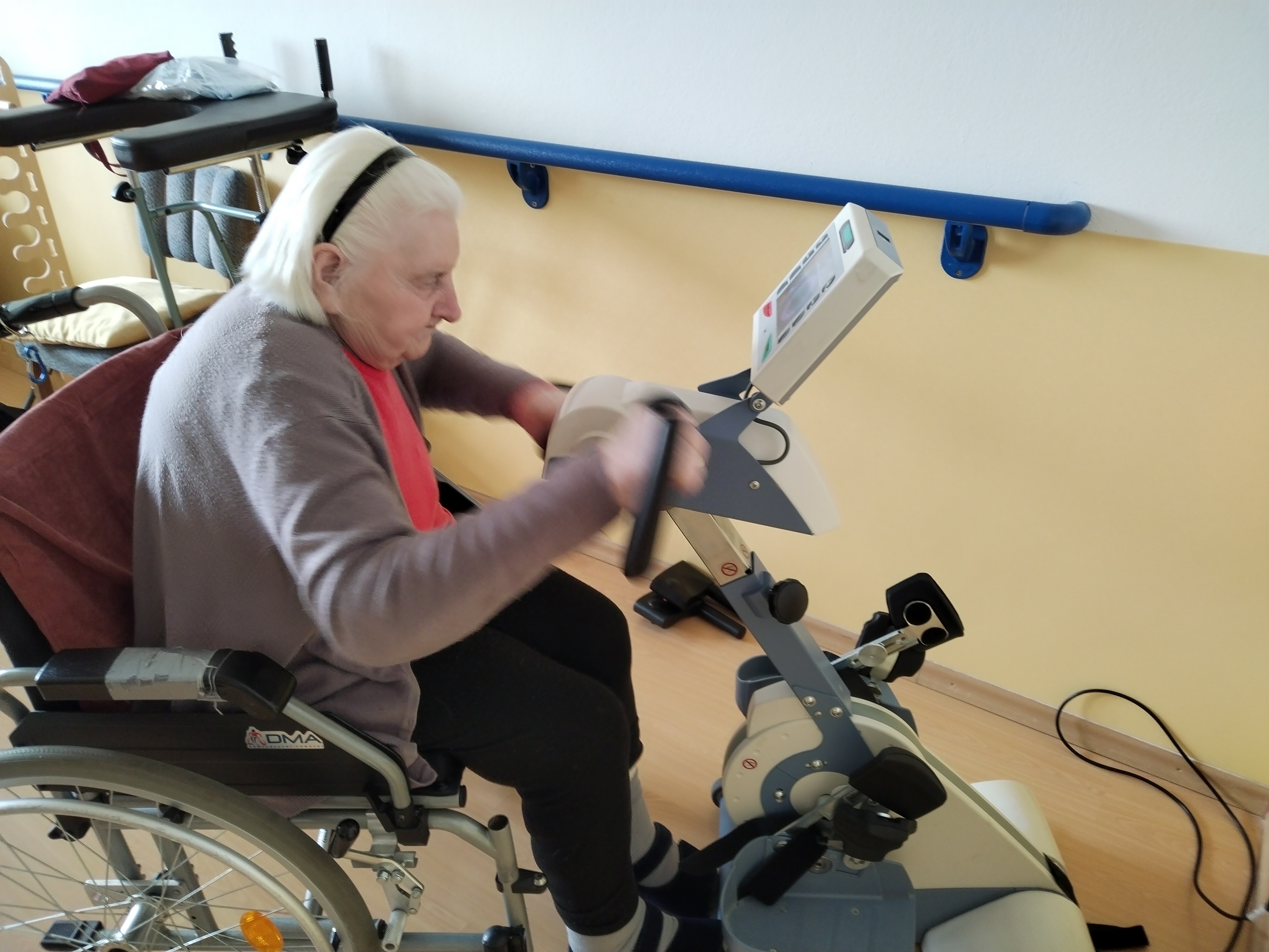 Na doporučení fyzioterapeutky Mgr. Julii Švecové jsme díky podpoře Nadačního fondu TESCO a Nadaci rozvoje občanské společnosti z programu Vy rozhodujete, my pomáháme mohli pořídit rehabilitační přístroj MOTOMED, který klientům pomáhá procvičit si ruce, nohy a celé tělo zároveň. Přístroj MOTOMED je u klientů velice oblíbený a žádaný.