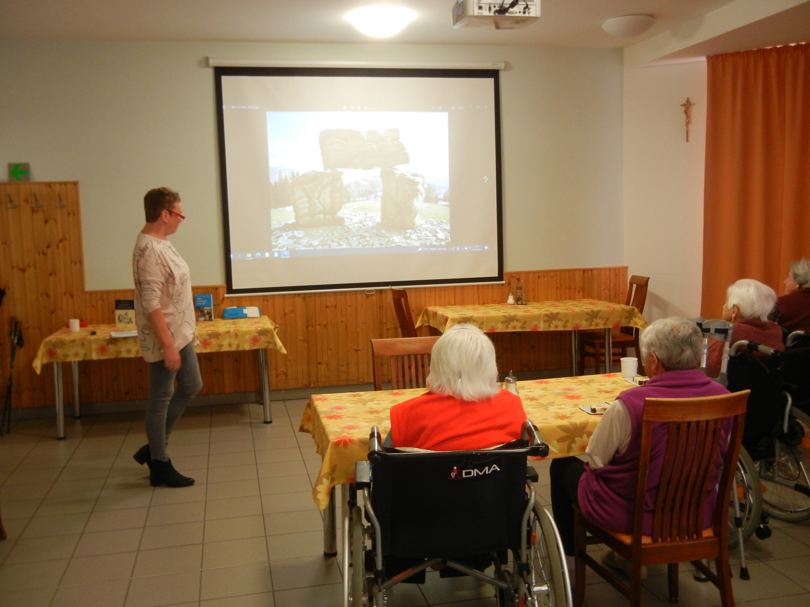 Úterní odpoledne patřilo besedě o vodoléčbě. Zdeňka Řezáčová, která do domova dochází jako dobrovolník, má bohaté zkušenosti z pobytů v Priessnitzových lázních Jeseník. Pro klienty připravila zajímavou přednášku věnovanou zejména jesenickým pramenům.