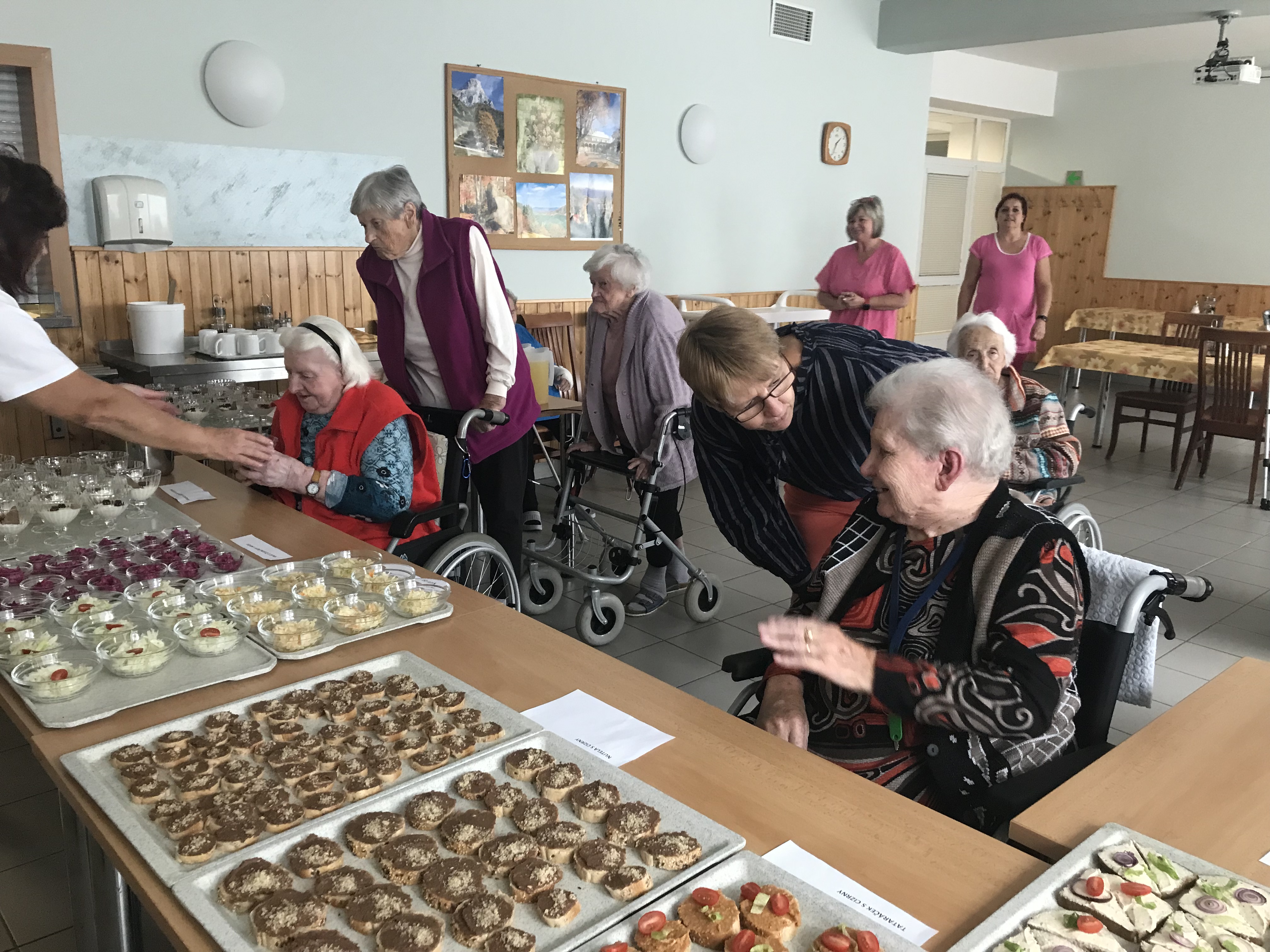 Pro odpolední program pracovníci kuchyně připravili ochutnávky zdravé výživy. Klienti mohli ochutnat zeleninové pomazánky, saláty nebo tvarohové pohárky s ovocem.