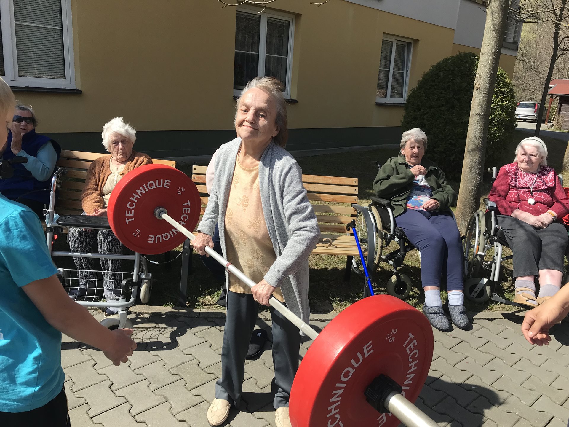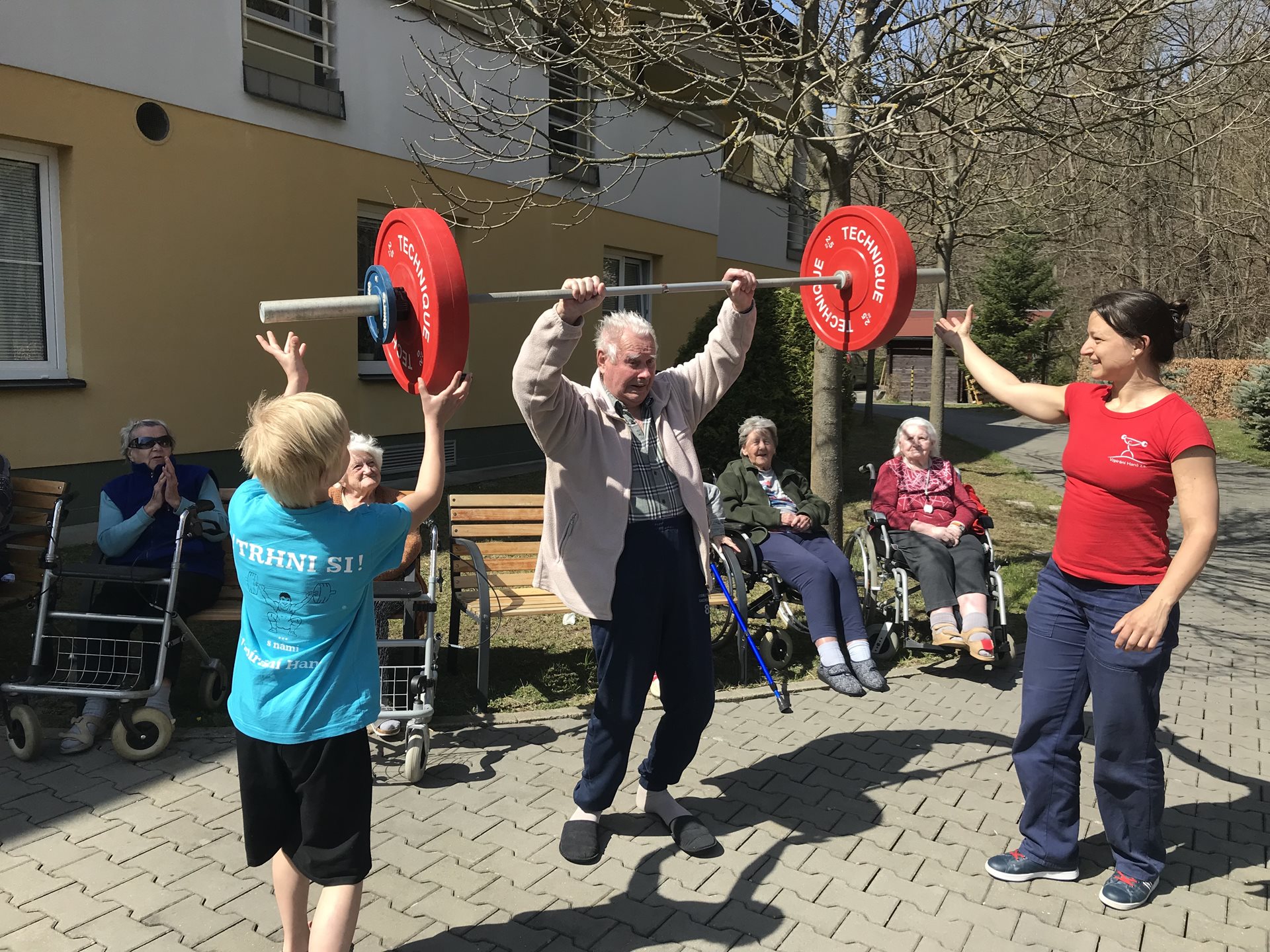 Ve čtvrtek 14.4.2022 navštívili Domov pro seniory Soběsuky členové vzpěračského oddílu Haná z Náměště na Hané, aby předvedli ukázku rozcvičky a tréninku vzpírání. Mladí vzpěrači od 10 do 17 let pod vedením trenérky Julie Švecové ukázali klientům domova šikovnost a předvedli svojí sílu při zdvíhání činek se zátěží. Čtyři děvčata a čtyři chlapci sklidili od diváků za každý výkon velký potlesk. V závěru ukázky mohli senioři potěžkat činky různé zátěže, čehož mnozí z nich využili.