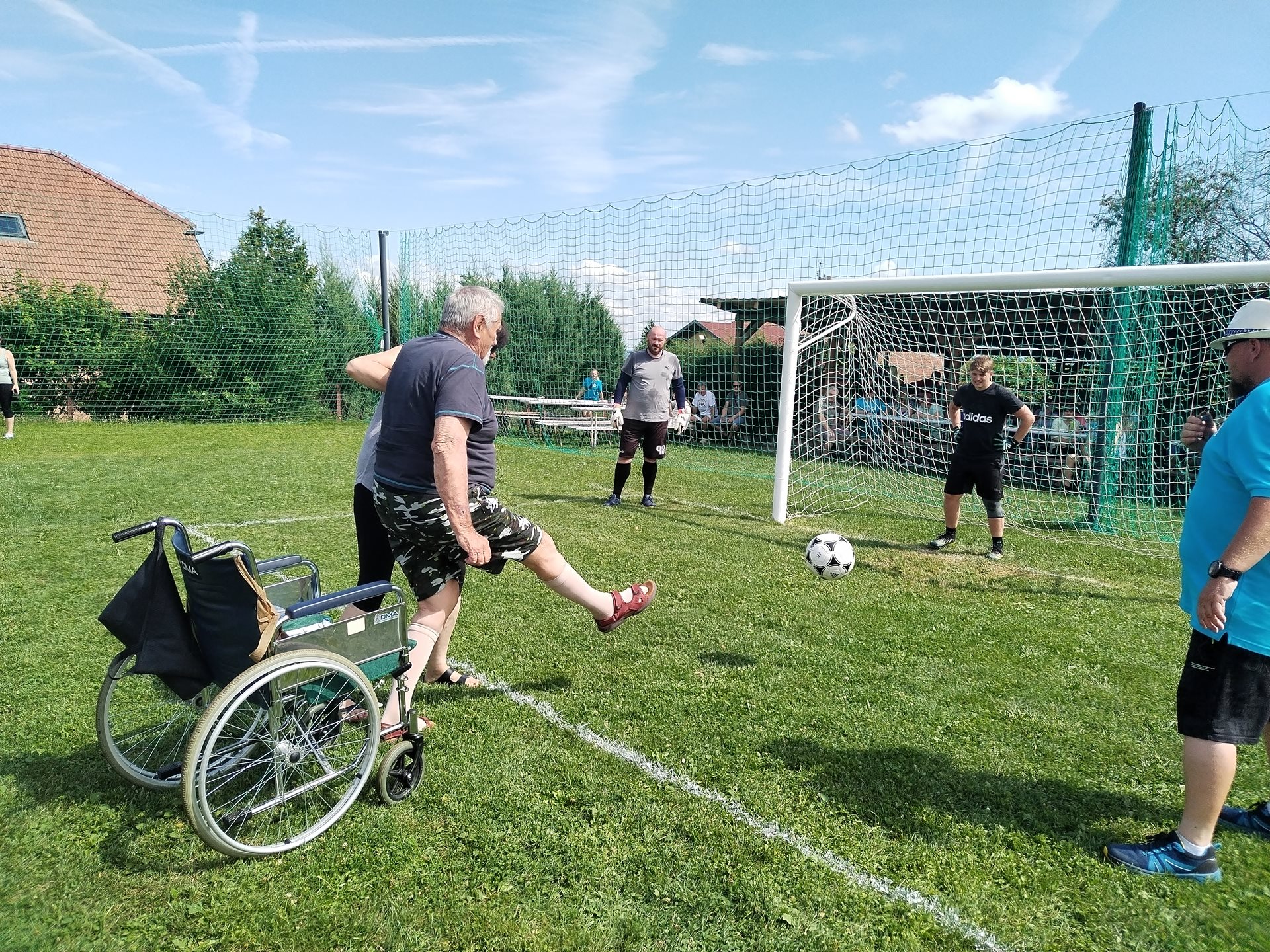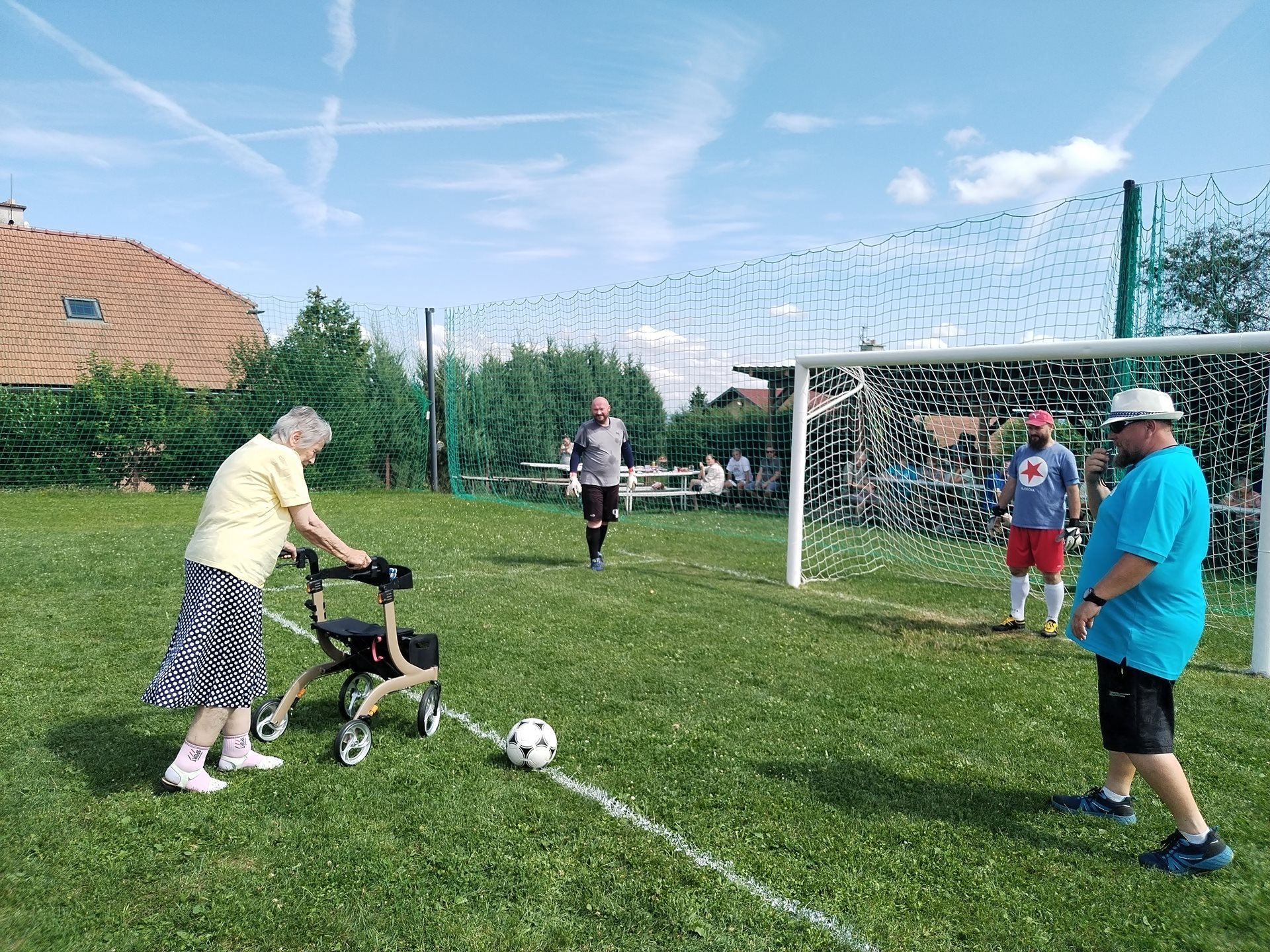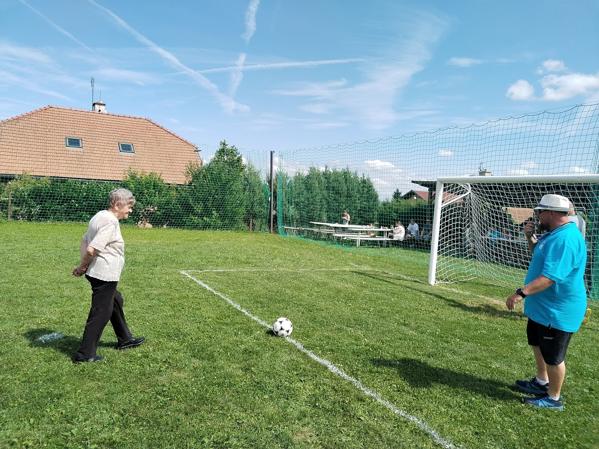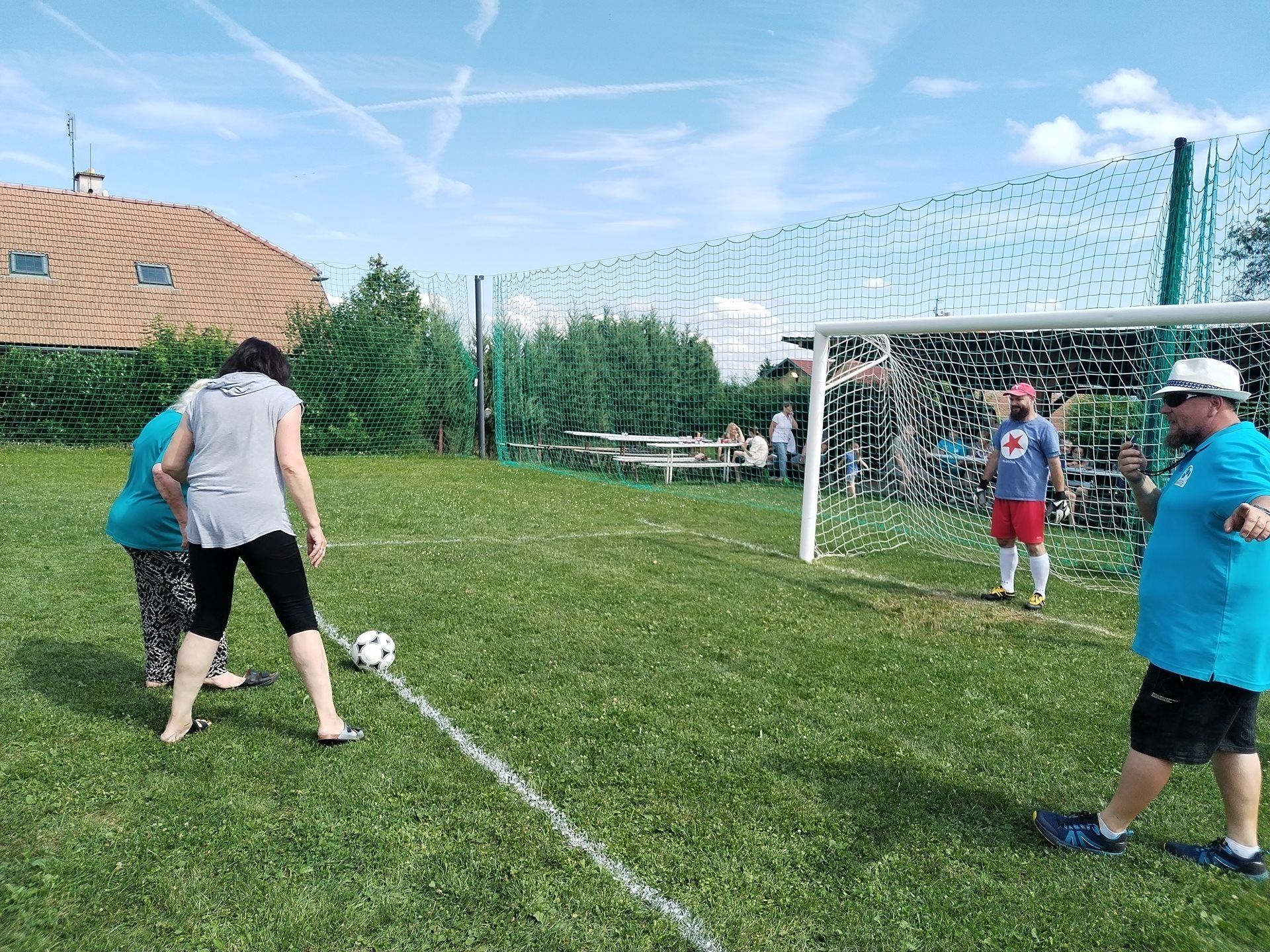 Manželé Hasníkovi pořádali již druhý ročník Alojzovské pentle. Přihlášení účastníci si tak mohli zakopat trestné kopy na branku. Naši klienti nesměli chybět a užili si tak parádní odpoledne. Zakopali si na branku, dali si pivko a klobásku. Také se potěšili z výher v tombole. Výtěžek z akce jde na dobrovolné účely a manželé Hasníkovi se rozhodli výtěžek darovat našemu domovu. Moc nás to potěšilo a moc děkujeme.