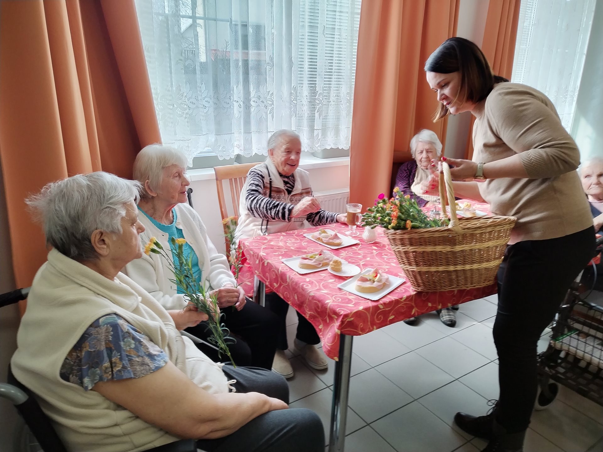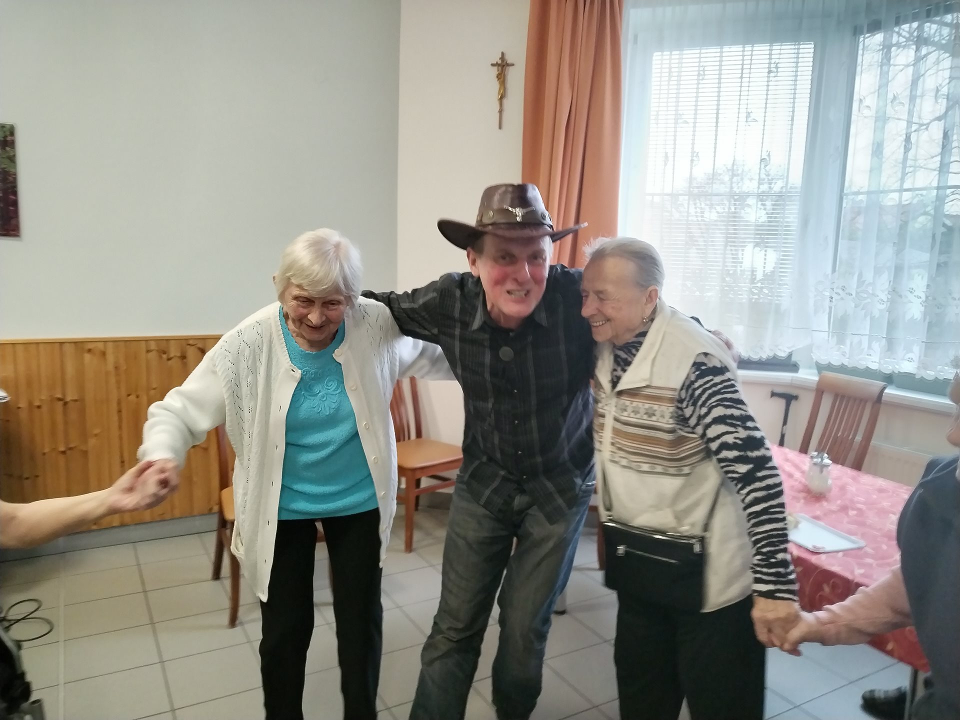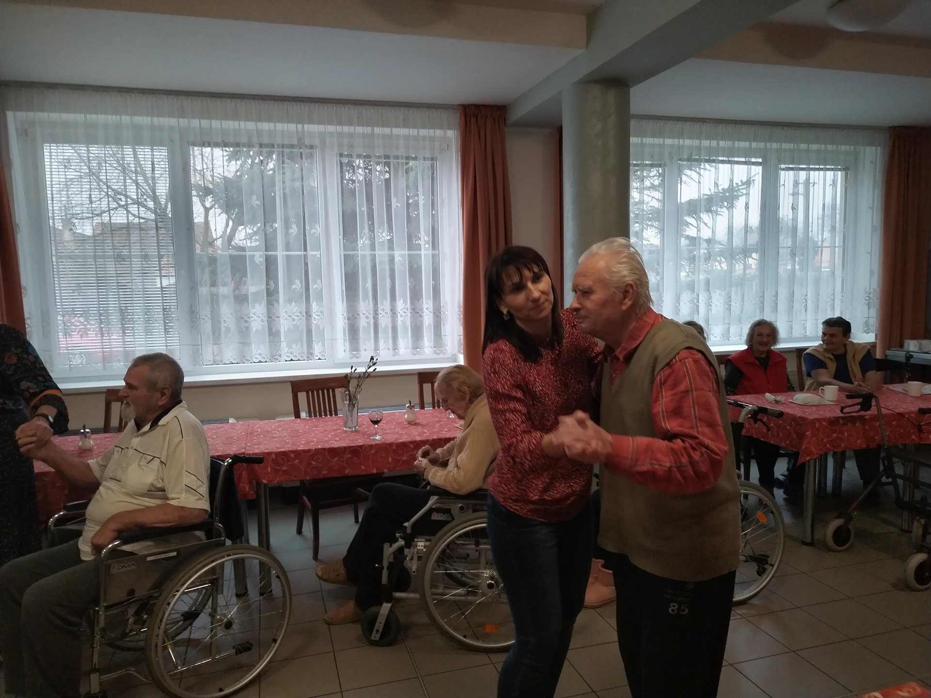 V pátek 8. března jsme uspořádali oslavu mezinárodního dne žen. Každá klientka domova obdržela kytičku, kterou jim předala dobrovolnice Radka. Pro všechny zúčastněné bylo připraveno občerstvení. K tanci a poslechu hrála kapela Tekutá švestka. V jejím podání zazněly starší i moderní, známé i méně známé písničky, které si klienti prozpěvovali. Nechybělo ani tanec klientů na vozících se zaměstnanci domova.