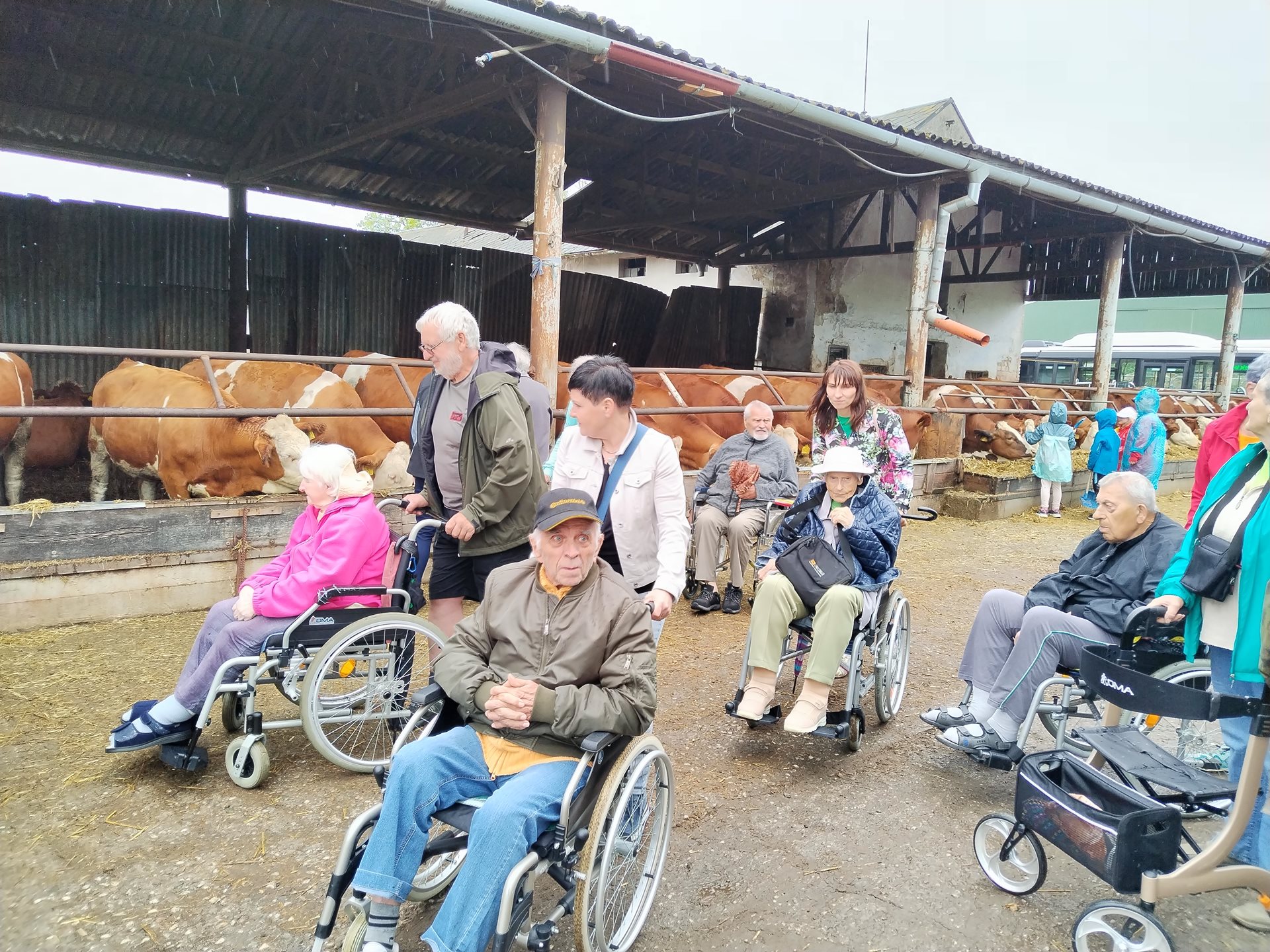 Ve středu 12. června jsme s klienty jeli do Štětovic na Zlatou farmu. Senioři viděli, jak jak jsou krávy dojeny, co žerou, jak jsou ustájeny, jak probíhá získávání mléka a jeho zpracování. Viděli také moderní způsob dojení krav bez lidské práce, a to dojení robotem. A to všechno za odborného výkladu pracovníka farmy. Senioři se zajímali, jak vypadá chov krav v této době. Někteří si pohladili jalovičky, telátka, dojnice, ovečky, kozy, pomazlili se s kočkami. Nakonec si zakoupili místní produkty a občerstvili se v kavárně přímo v areálu.
