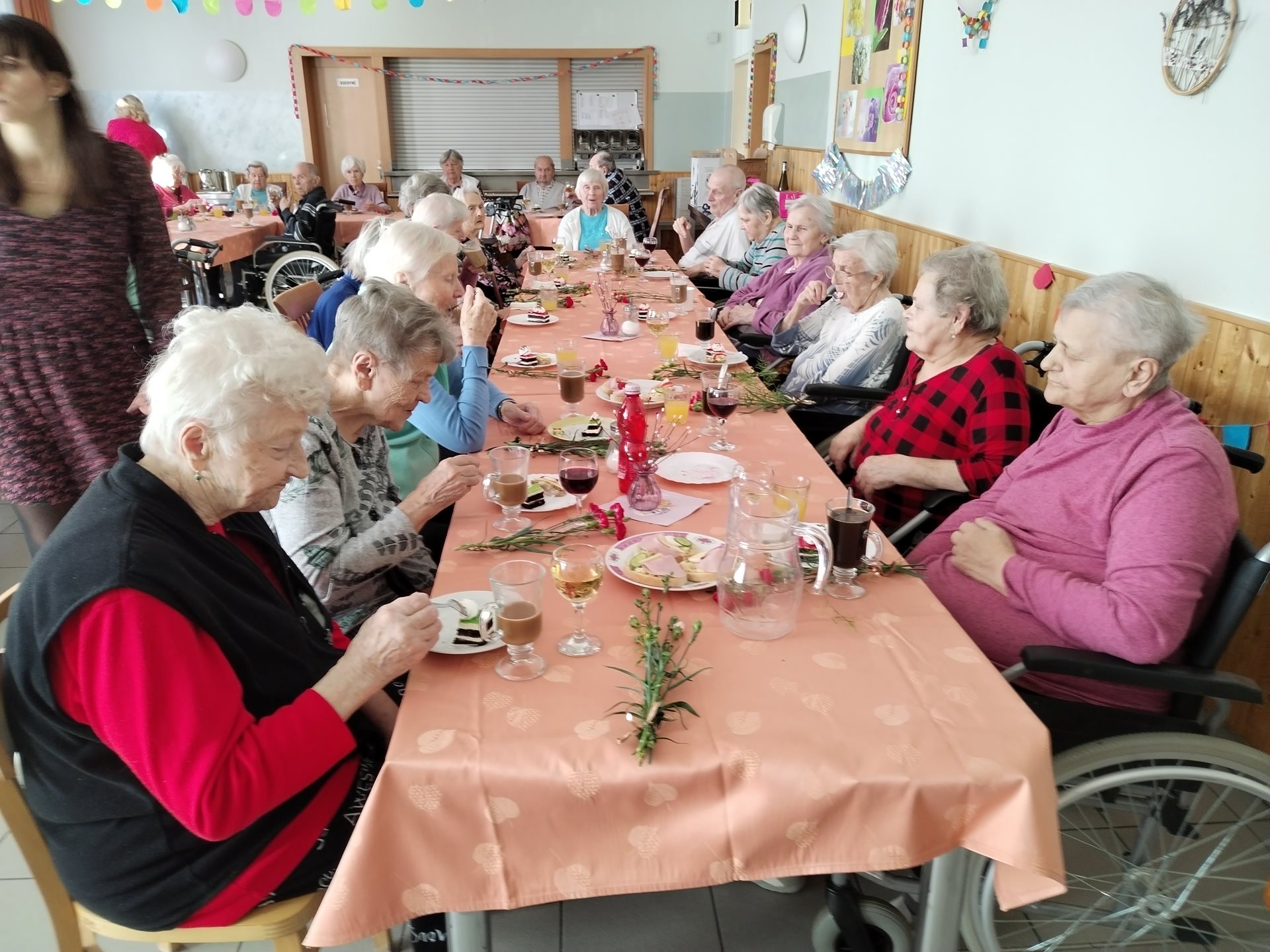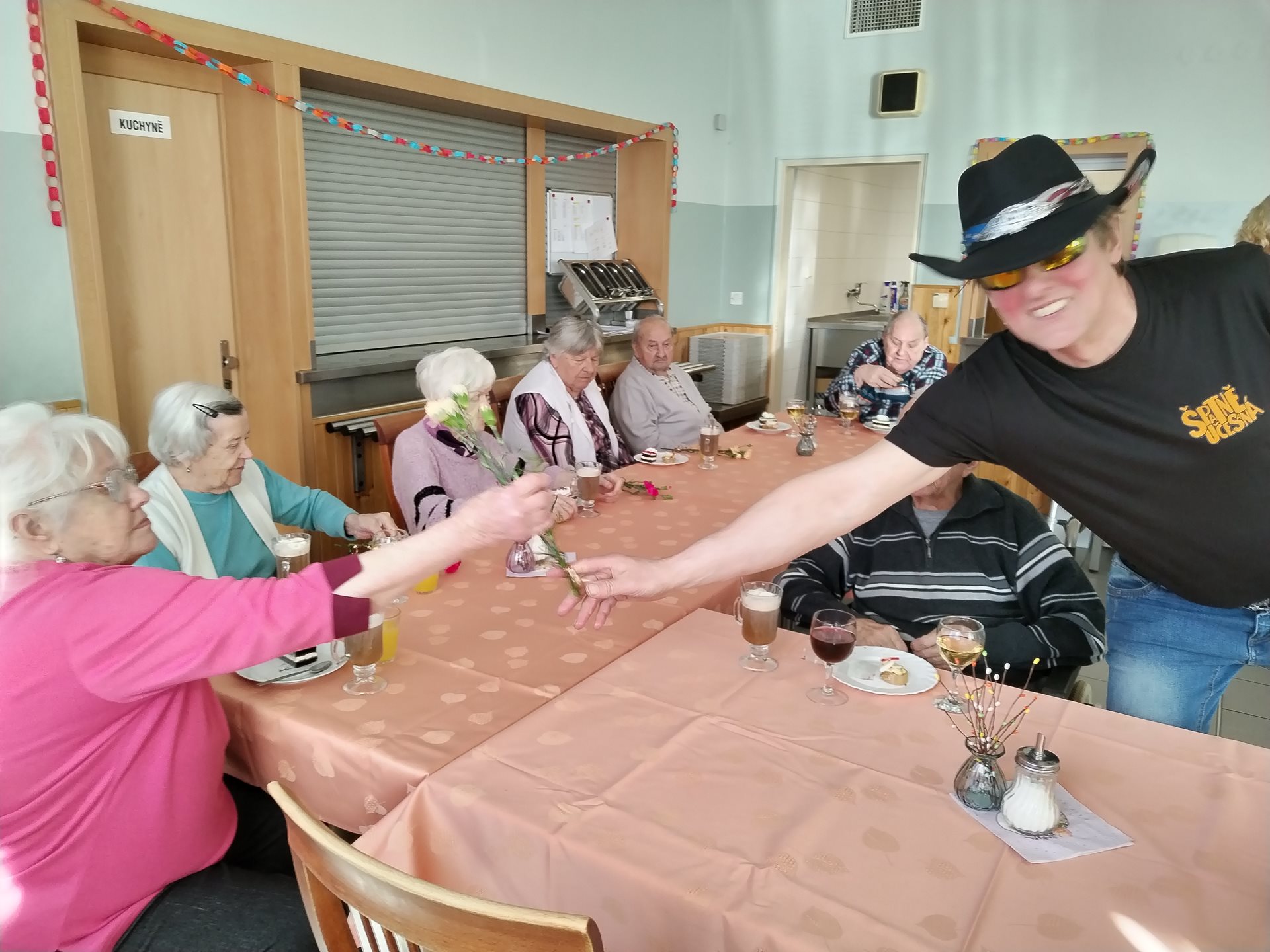 V pátek 7. března jsme se sešli v jídelně domova, abychom oslavili MDŽ. Všem ženám byla předána kytička.