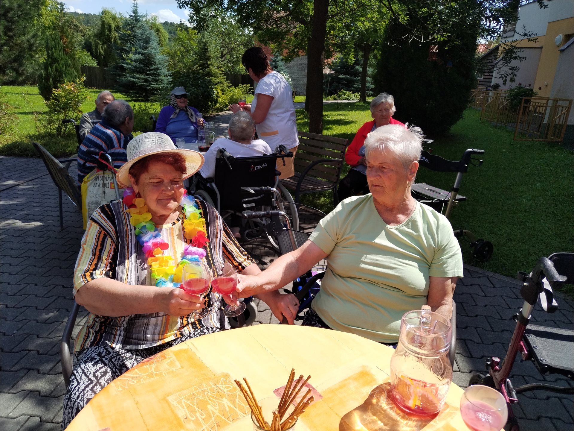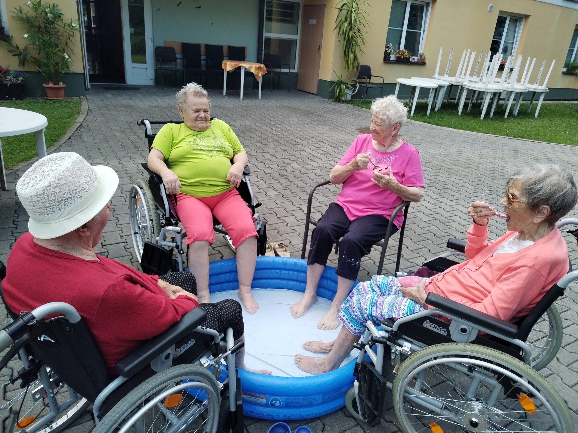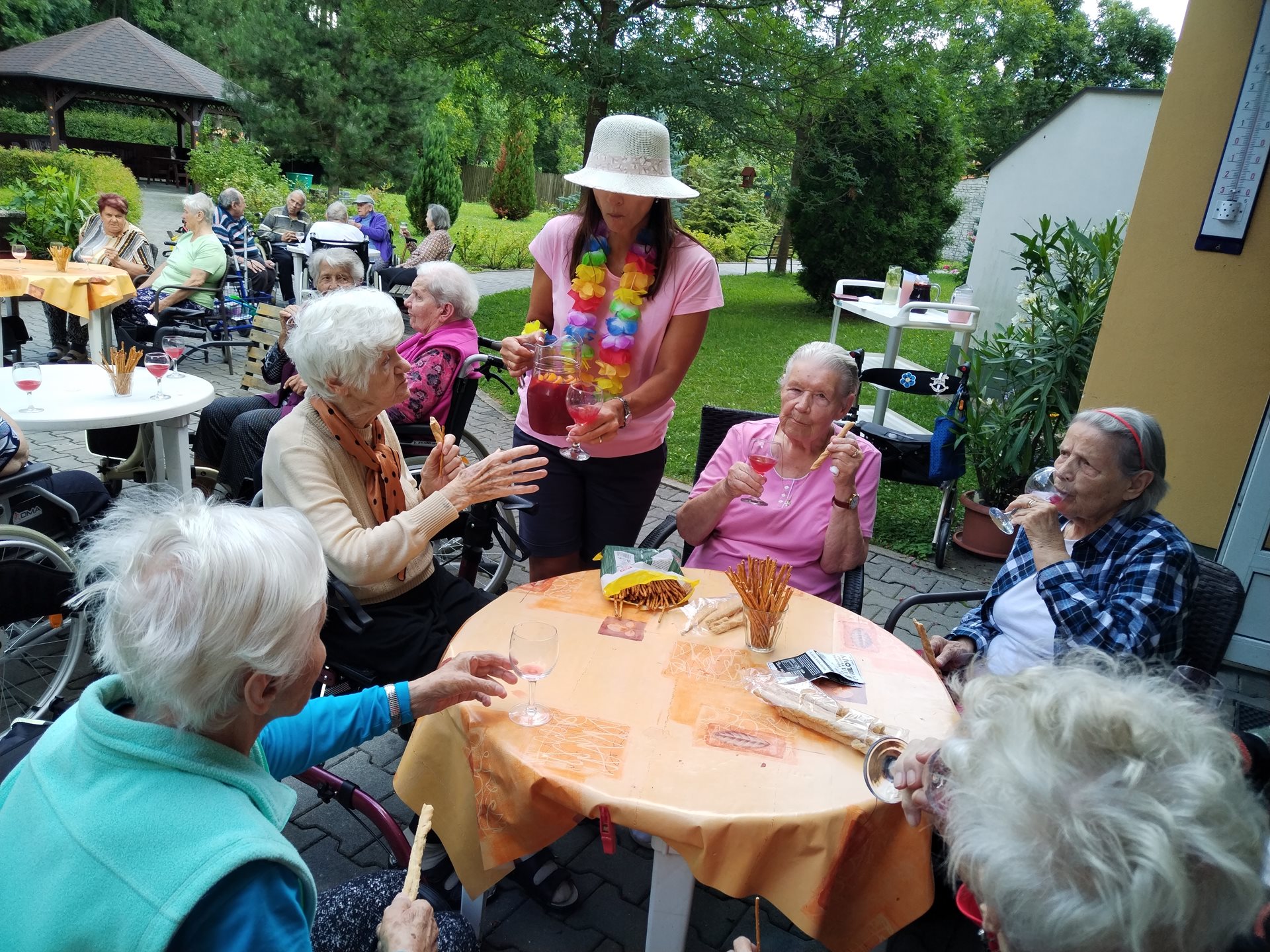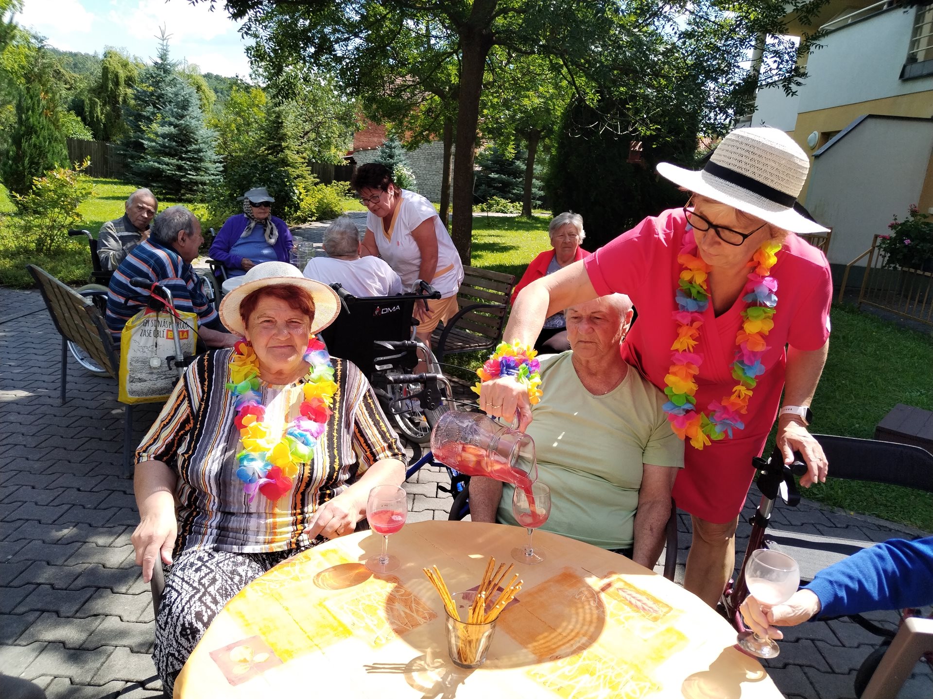 Klienti si léto v domově užívají. Navštívili kemp Žralok, aranžovali z živých květin, trhali rybíz, ochutnávali míchané nápoje a pokud bylo opravdu teplo, osvěžili si nohy v bazénku.