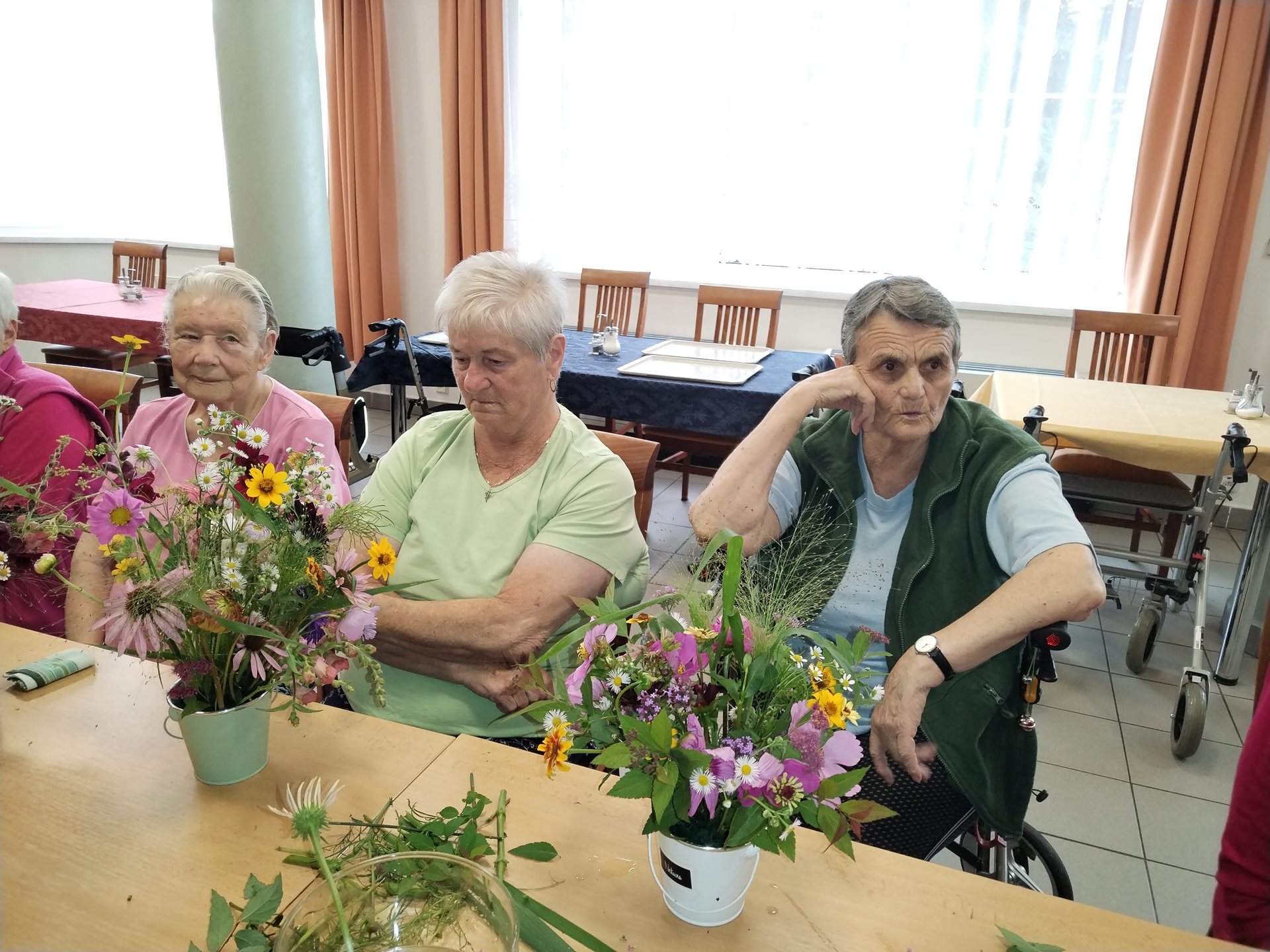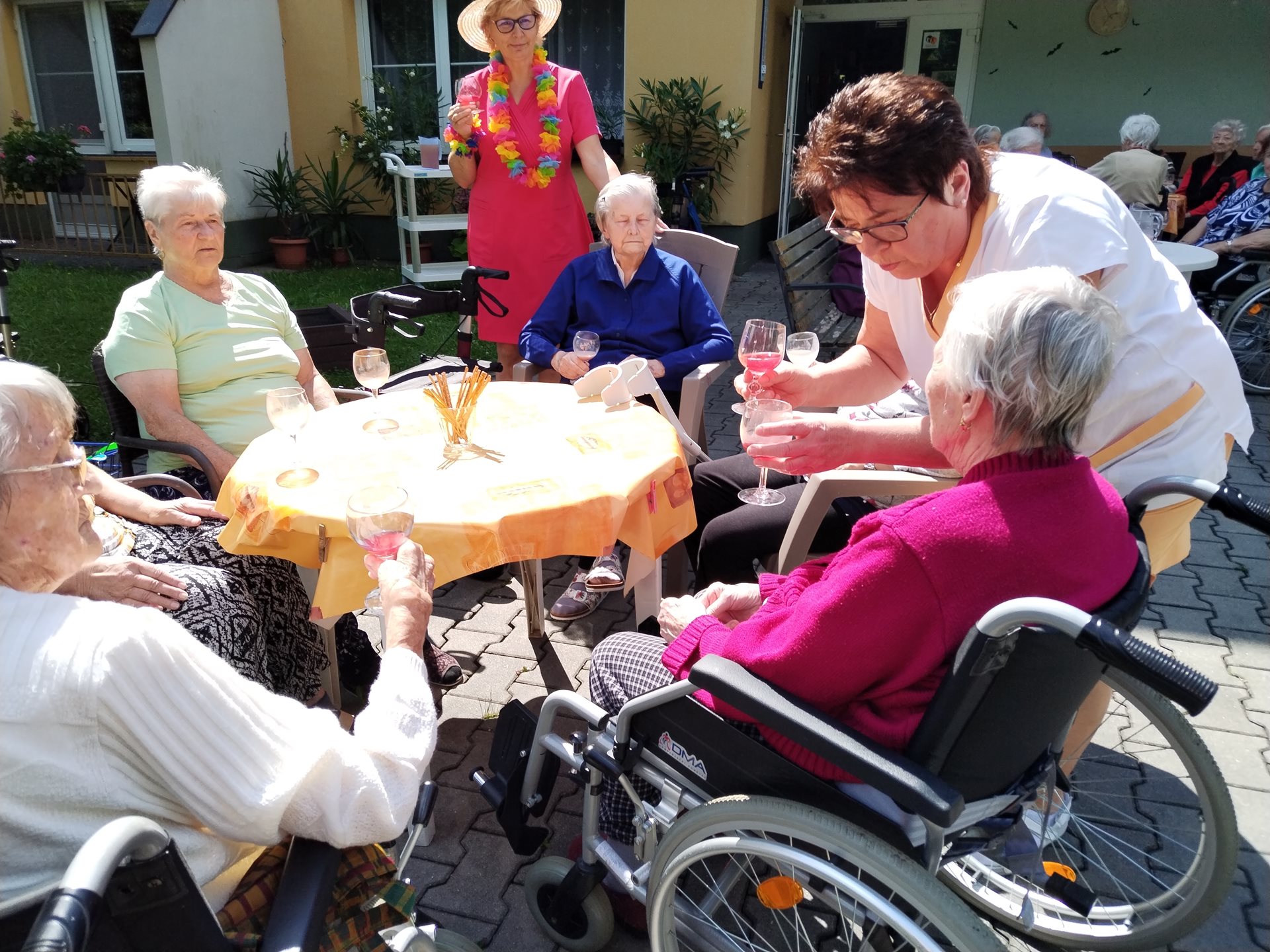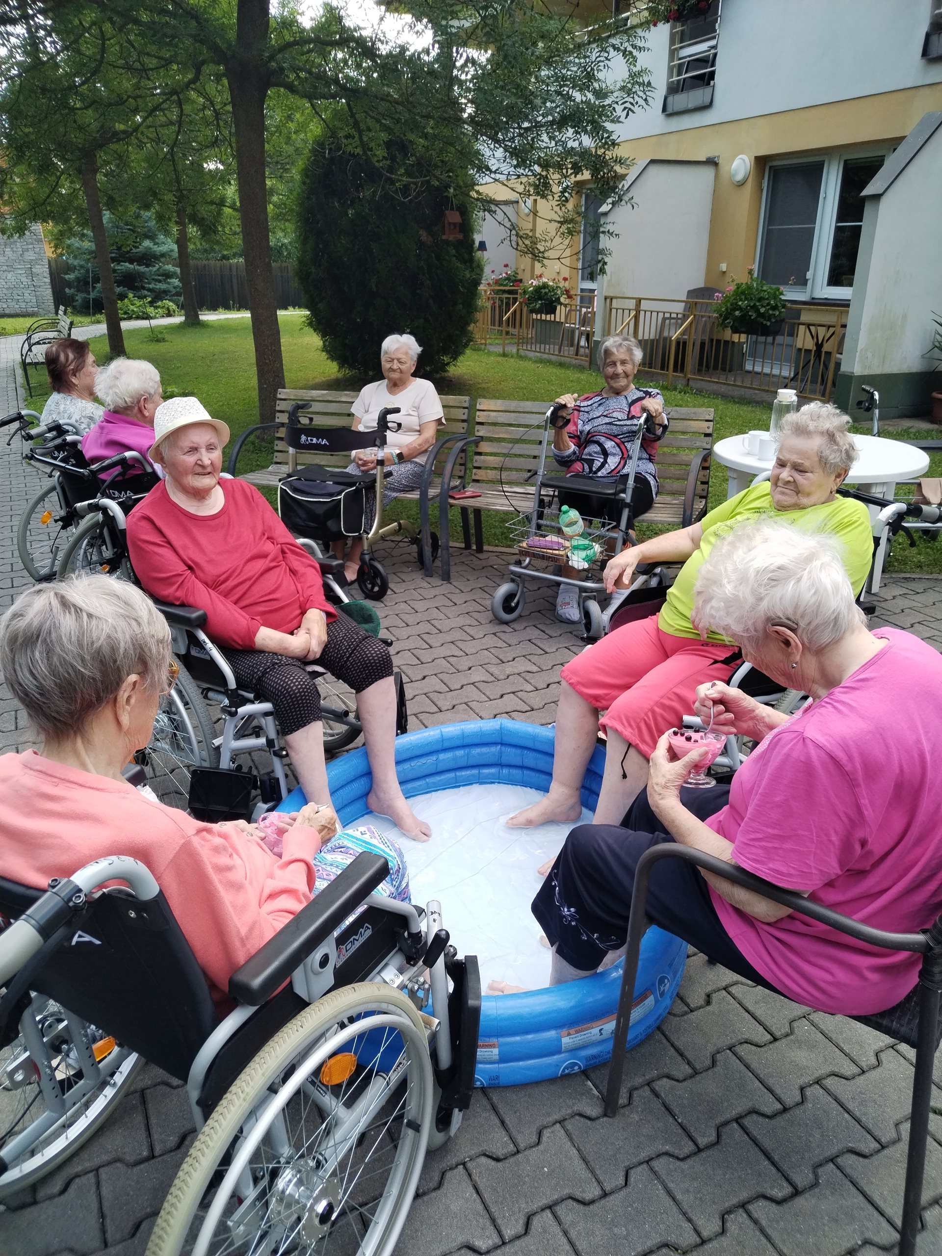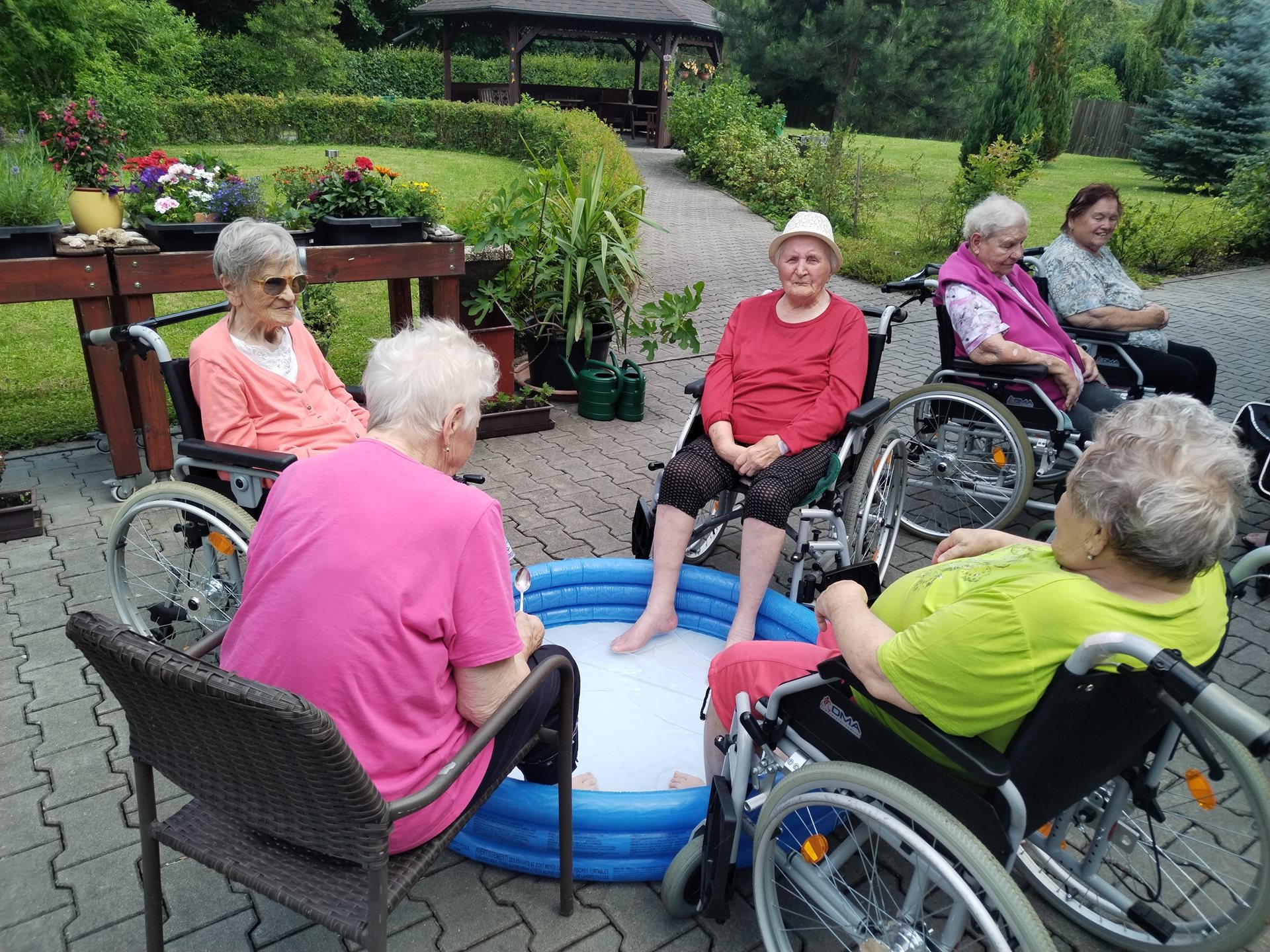 Klienti si léto v domově užívají. Navštívili kemp Žralok, aranžovali z živých květin, trhali rybíz, ochutnávali míchané nápoje a pokud bylo opravdu teplo, osvěžili si nohy v bazénku.