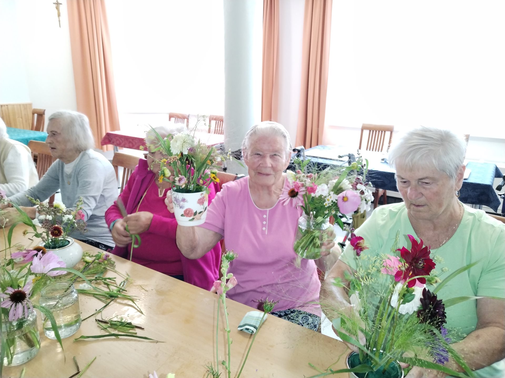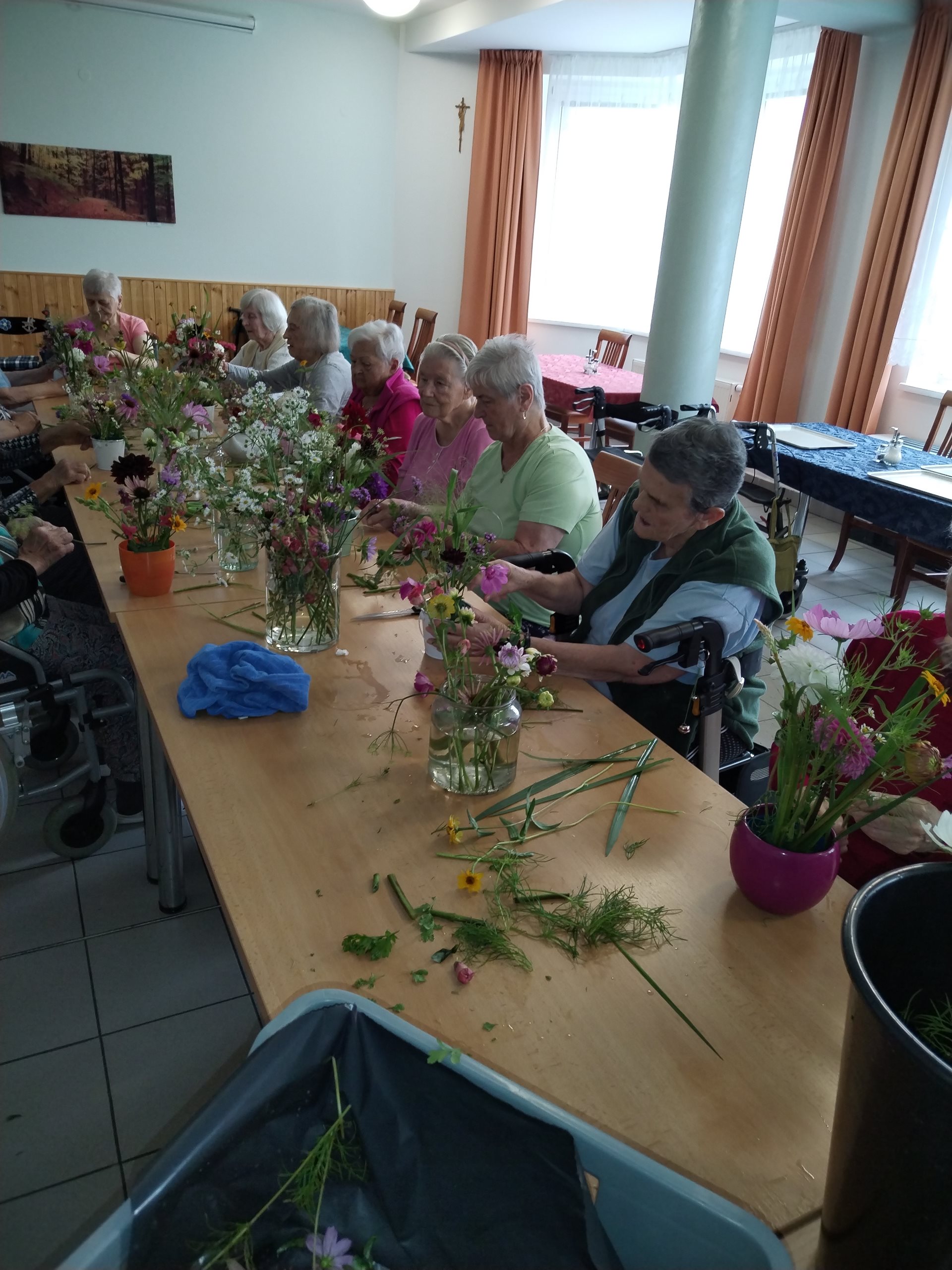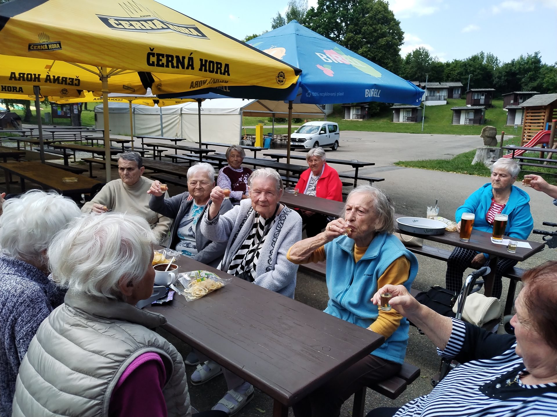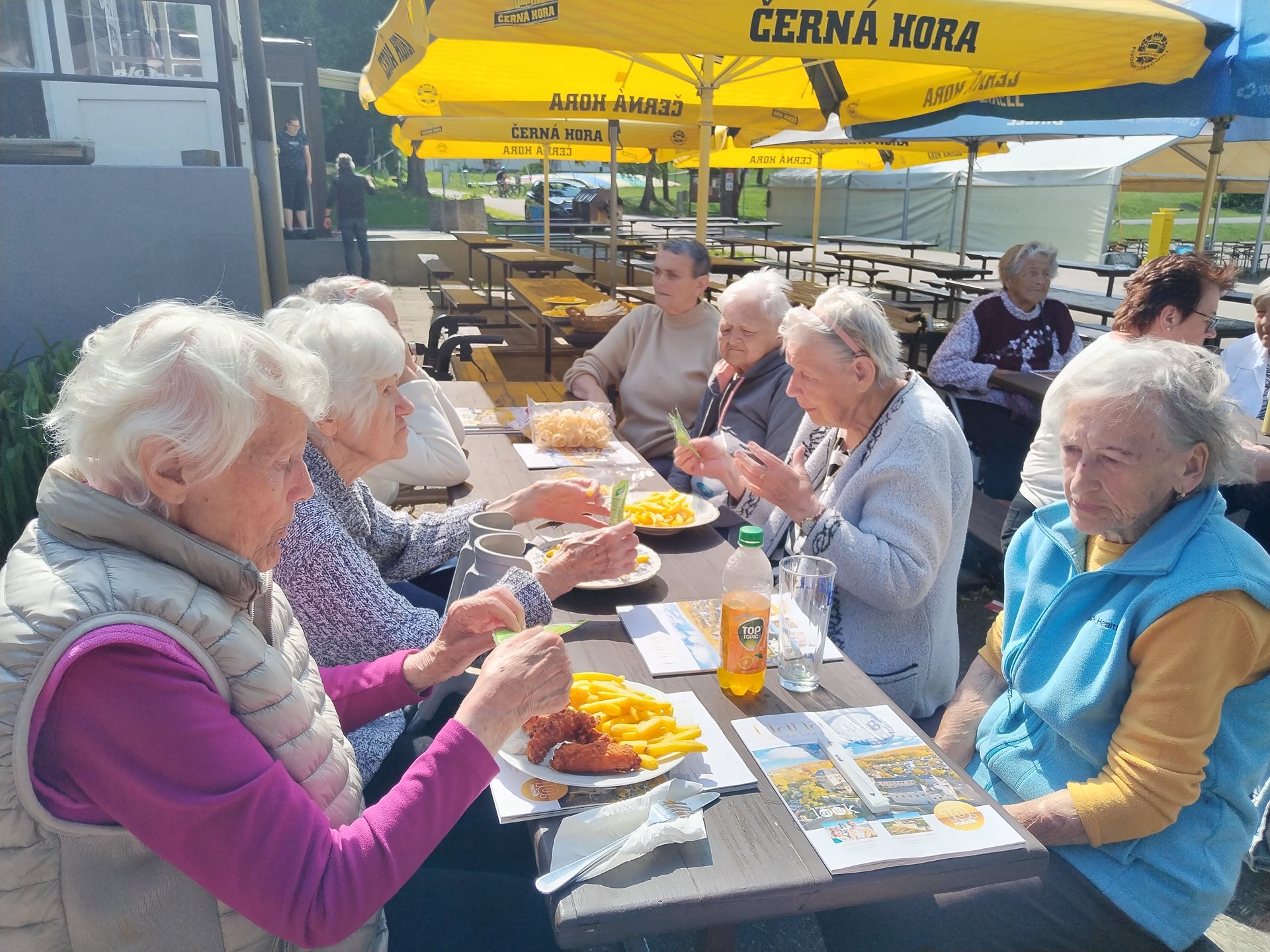 Klienti si léto v domově užívají. Navštívili kemp Žralok, aranžovali z živých květin, trhali rybíz, ochutnávali míchané nápoje a pokud bylo opravdu teplo, osvěžili si nohy v bazénku.