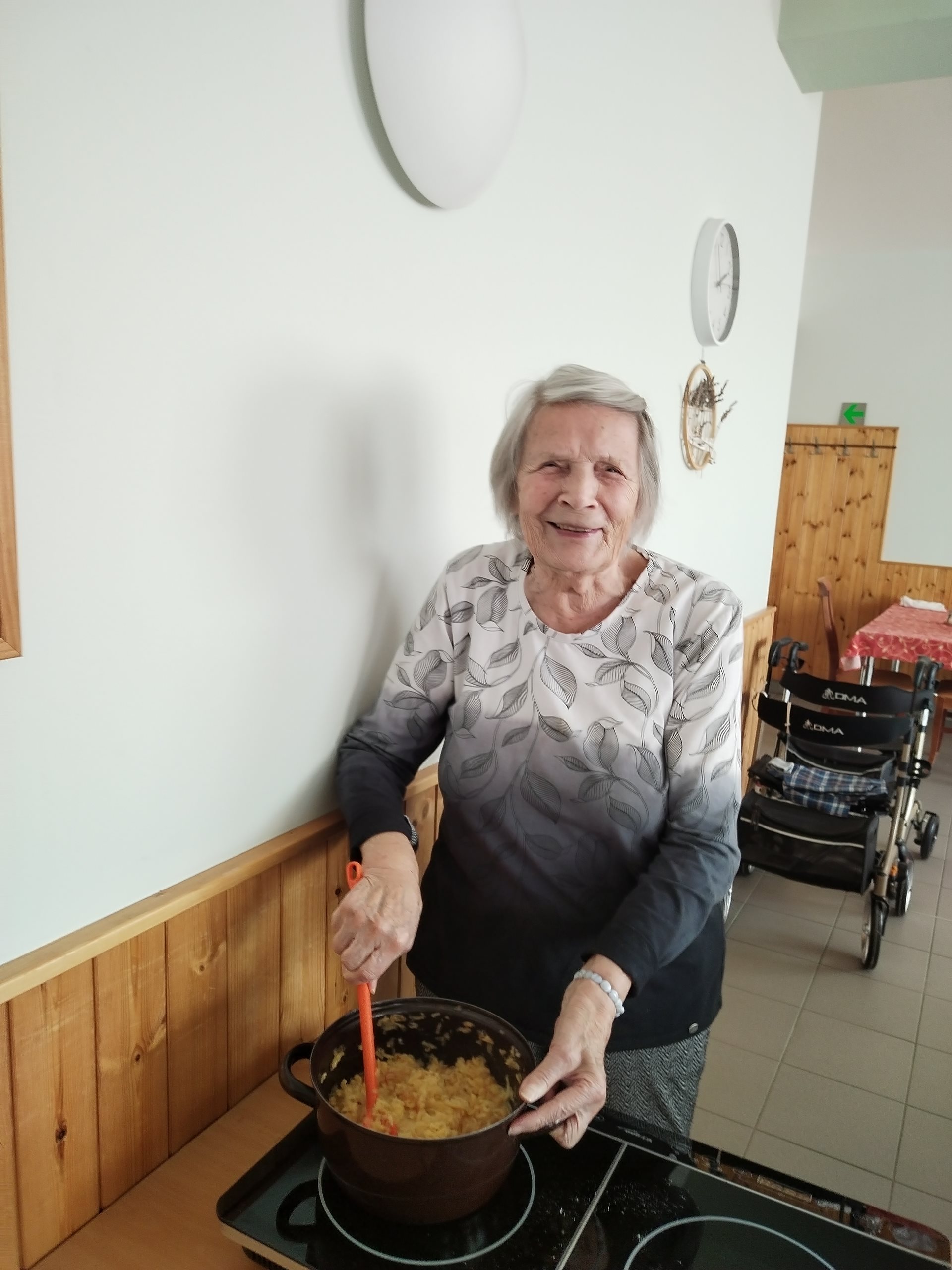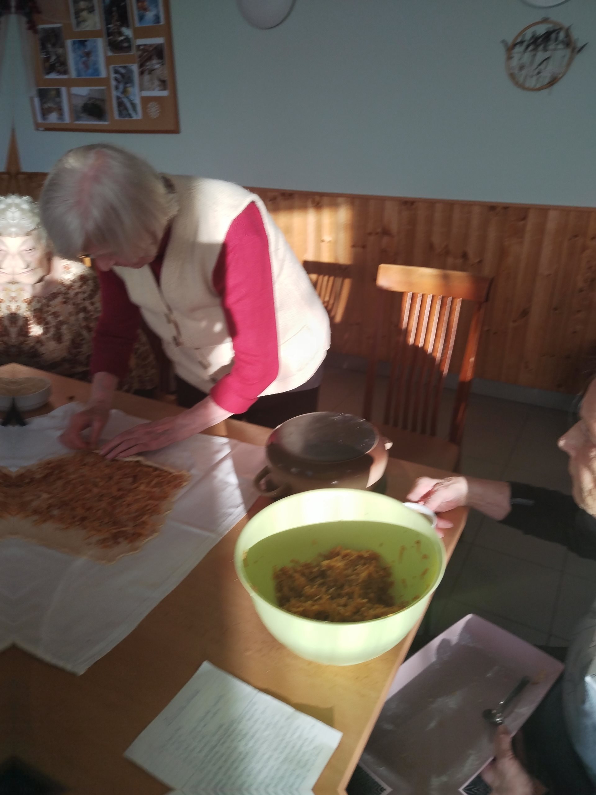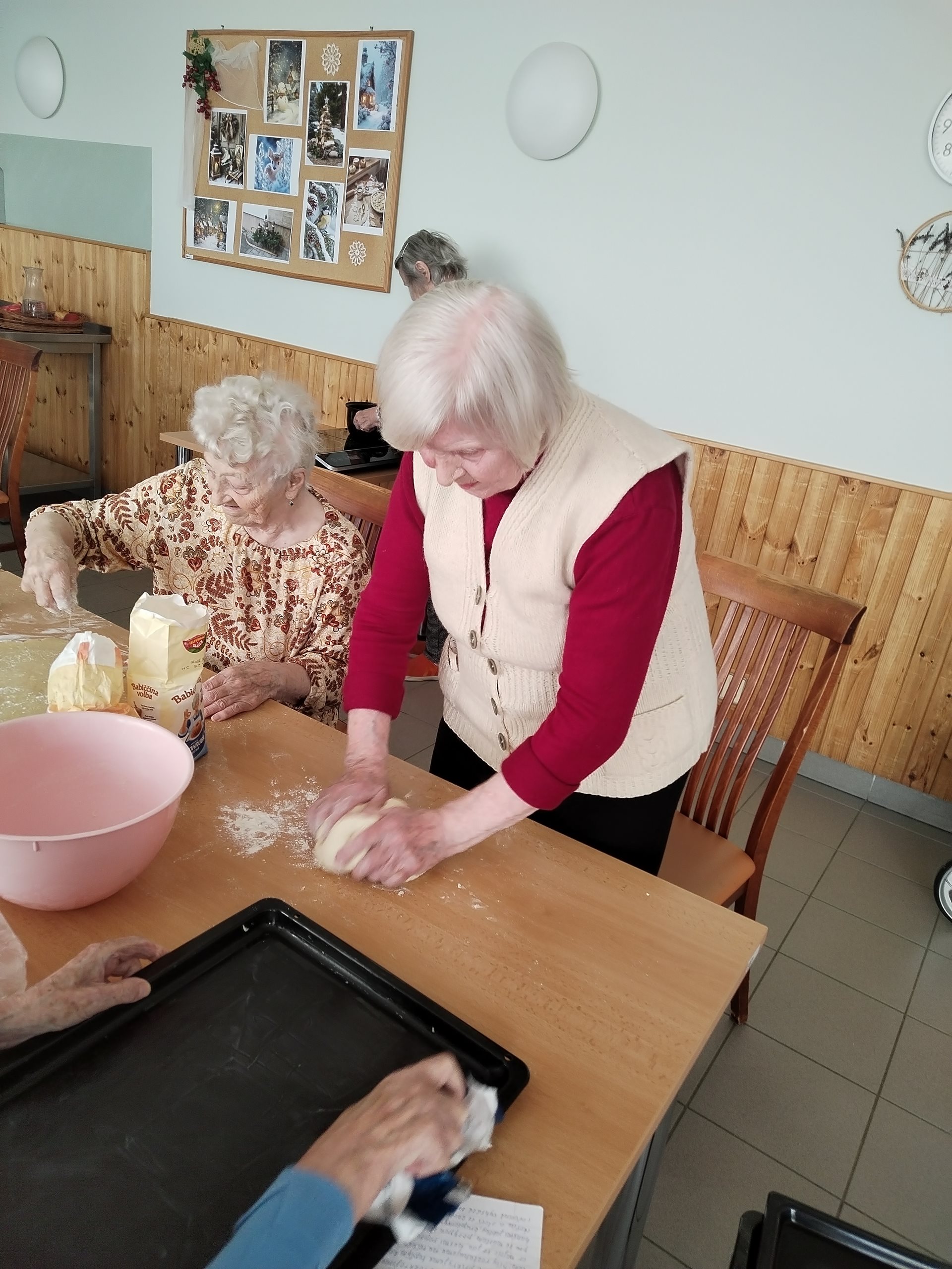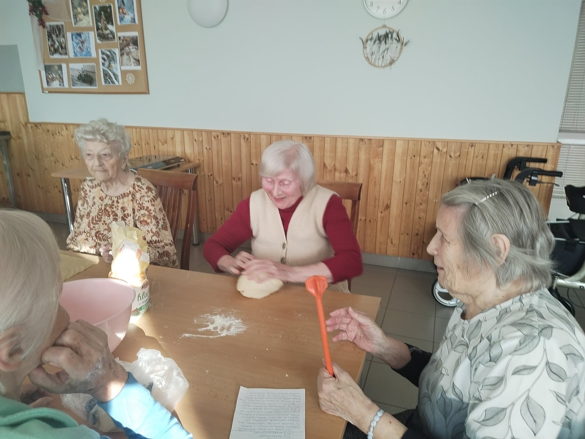 Zimní čas si klientky v domově krátí pravidelným pečením. Tentokrát přišly s nápadem upéct štrúdl podle jejich receptu. Pekl se tedy klasický, kynutý a také tažený štrúdl. Pečení se povedlo a tak bylo něco dobrého ke kávě.
